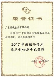 2017中國(guó)烘焙行業(yè)最具影響力十大品牌