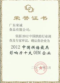 2012中國(guó)烘焙OEM十強(qiáng)企業(yè)