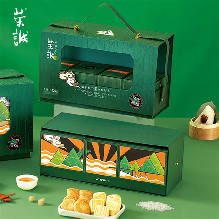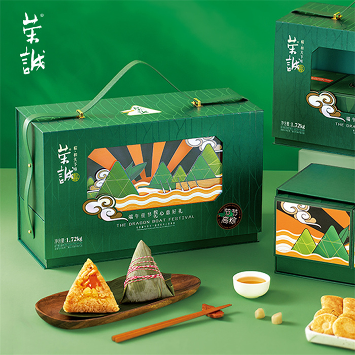 【編 碼】 HZZ2407 【條形碼】 6925755536496 【尺 寸】 40x25.5x16cm 【凈含量】 1.72kg 【規 格】 1.72kgx4盒/箱 【內容物】 150g潮汕高湯海鮮粽(1粒),200g潮汕特色沙茶牛肉粽(2粒),200g潮汕地道鹵水肉粽(2粒),200g潮汕雙烹粽(2粒),200g蜜棗粽(2粒),200g豆沙粽(2粒),80g香焙蔓越莓酥(8塊),150g定勝糕(綠豆原味)(6塊),180g香妃鳳梨酥(6塊),80g澳式金泊雞蛋卷(咸蛋黃)(6塊),80g香焙花生酥(8塊)