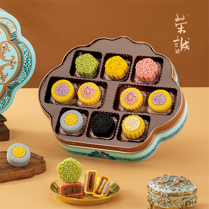 60g桃山皮月餅(雪媚娘檸檬卡曼橘)x2,60g桃山皮月餅(豆蓉香橙檸檬)x2,60g桃山皮月餅(五黑腰果)x1,60g桃山皮月餅(五黑巴旦木)x1,60g紅茶桂圓月餅 x1,60g豆蓉斑斕月餅x1,60g豆乳黑麥月餅x1,60g蛋黃白蓮蓉月餅x1