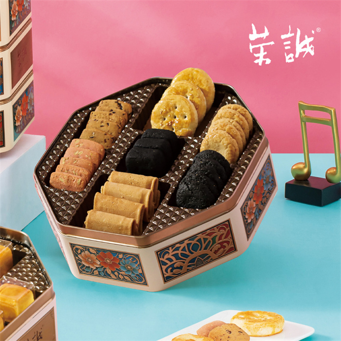 【編 碼】 CGT2505 【條形碼】 6925755536670 【尺 寸】 27x27x23.5cm 【凈含量】 1.21kg 【規(guī) 格】 1.21kgx4盒/箱 【內(nèi)容物】  100g綜合果仁,100g開心果,100g蔓越莓干,88g牛軋堅(jiān)果酥(原味),51g澳式金泊雞蛋卷(芝麻原味) (4塊),90g黑金鳳梨酥,105g絲絲濃香雪媚娘椰蓉餅,50g香焙黑芝麻酥,50g香焙花生酥 ,40g蔓越莓曲奇,40g果仁曲奇,66g牛乳真果趣(鳳梨) ,66g牛乳真果趣(草莓) ,66g牛乳真果趣(蔓越莓) ,66g牛乳真果趣(金柑) ,66g牛乳真果趣(椰子) ,66g牛乳真果趣(芒果)