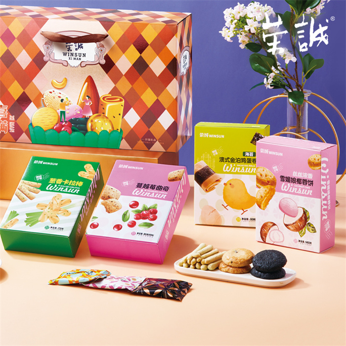 【編 碼】 CGZ2510 【條形碼】 6925755536830 【尺 寸】 37x12x23cm 【凈含量】 532g 【規 格】 532gx6盒/箱 【內容物】 80g香焙杏仁酥x1,80g香焙黑芝麻酥x1,80g蔓越莓曲奇x1,72g蔥香卡拉棒x1,80g澳式金泊雞蛋卷(海苔)x1,140g絲絲濃香雪媚娘椰蓉餅x1