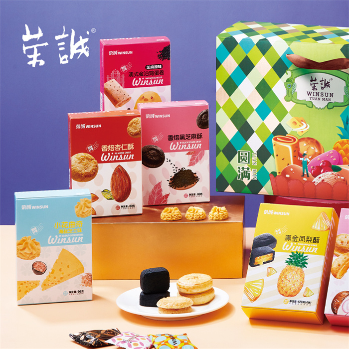 【編 碼】 CGZ2511 【條形碼】 6925755536847 【尺 寸】 38x13x27cm 【凈含量】 756g 【規(guī) 格】 756gx6盒/箱 【內(nèi)容物】 80g香焙杏仁酥x1,80g香焙黑芝麻酥x1,80g蔓越莓曲奇x1,80g椰蓉奶酥x1,80g澳式金泊雞蛋卷(芝麻原味)x1,140g絲絲濃香雪媚娘椰蓉餅x1,96g小花曲奇(海鹽芝士味)x1,120g黑金鳳梨酥x1