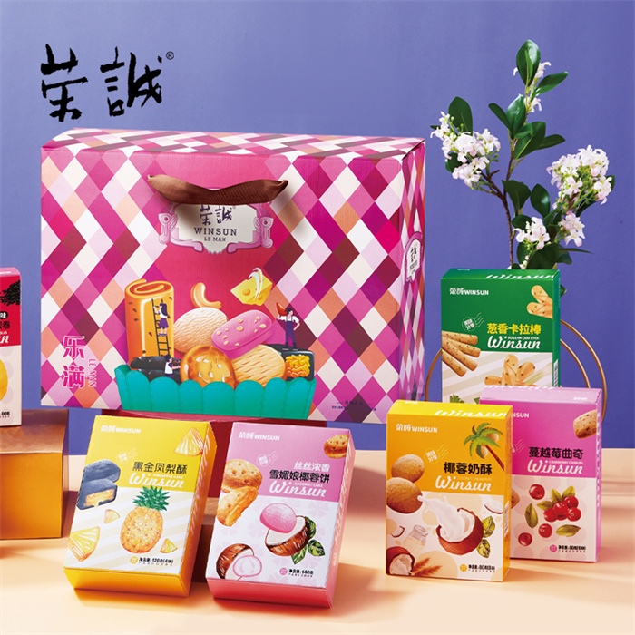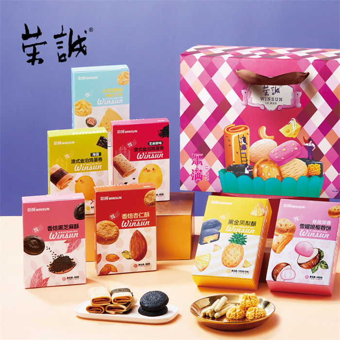 【編 碼】 CGZ2512 【條形碼】 6925755536854 【尺 寸】 40x13x29cm 【凈含量】 908g 【規(guī) 格】 908gx4盒/箱 【內(nèi)容物】  80g香焙杏仁酥x1,80g香焙黑芝麻酥x1,80g蔓越莓曲奇x1,96g小花曲奇(海鹽芝士味)x1,120g黑金鳳梨酥x1,140g絲絲濃香雪媚娘椰蓉餅x1,80g澳式金泊雞蛋卷(芝麻原味)x1,80g澳式金泊雞蛋卷(海苔)x1,80g椰蓉奶酥x1,72g蔥香卡拉棒x1